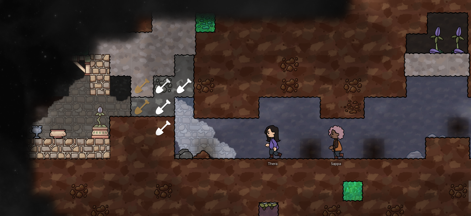 Deep underground, your explorers may also uncover ancient relics buried in the ground. Jars, instruments, objects, and all sorts of other weird stuff have been left behind – and your explorers love them. By using the brand new Display Stand building, you can also proudly showcase your discoveries, giving nearby explorers a bonus to their mood.