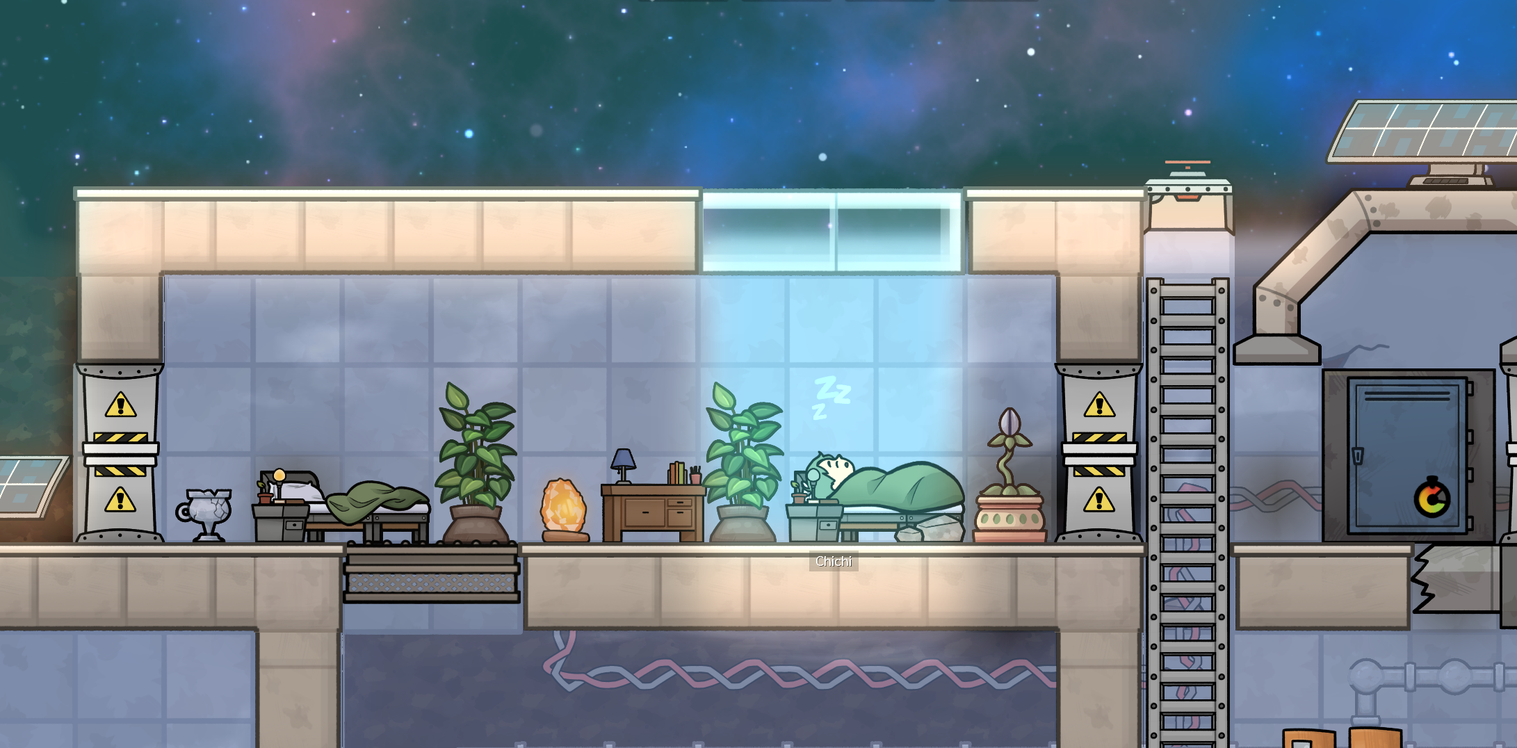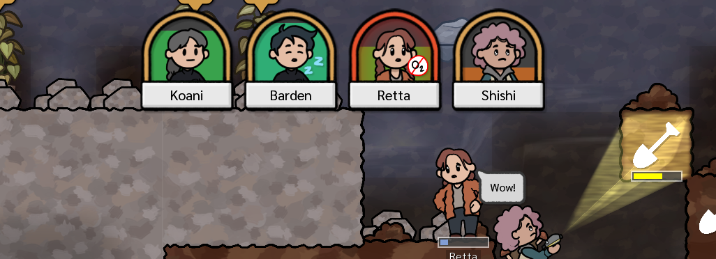 The top explorer selection bar has been polished in this update. Now along with their mood, the game will also show an icon if the explorer is busy doing something (sleeping, eating, writing in their diary, etc.) – and more importantly, will glow red if an explorer is dangerously low on oxygen.